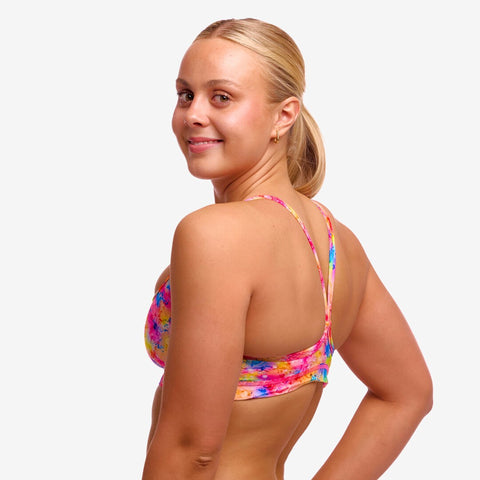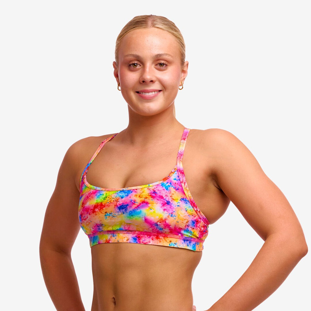 With a firm fitting racer back, double bind shoulder straps plus a wide under bust elastic, I promise to keep you secure and comfortable throughout your swim. I’m perfect for regular swimming and wearing under a wetsuit if you’re open water swimming. I’m sold as a separate so you can mix and match me across sizes and prints with your fave Funkita brief plus I’m made with all the care and love in production that makes me proud to be Funkita. ECO C-INFINITY is the same superior quality polyester construction that you’ve come to trust from our C-Infinity fabric, but manufactured from end-of-life plastic water bottles. Providing 100% chlorine resistance and exceptional colours, ECO C-INFINITY gives a new life to waste, reducing our environmental impact and keeping you swimming day in and day out in the brightest swimwear on the market.